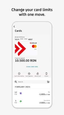 Tap on the Cards menu, choose the desired card and you have full access to its settings. You can change POS or ATM limits and you can also block/unblock it or decide whether you want to use it for online payments. Anytime, on the spot.