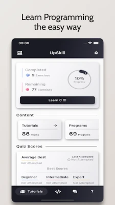 Whether you want to learn Programming as a Hobby, for School/College, or want to build a Career in the field of Software Engineering, this Tutorial suits your needs. UpSkill Tutorial covers everything from the Basics of Programming to Advanced Concepts like Data Structures. It also comes with a sleek and interactive graphical user interface.