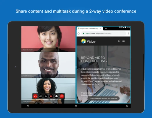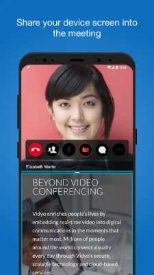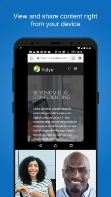 Stay connected and engaged on-the-go. With a powerful and intuitive user experience from your Android phone or tablet, VidyoConnect delivers the reliability, ease-of-use and rich features needed for productive face-to-face video meetings.