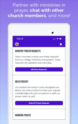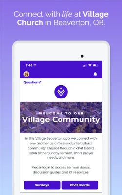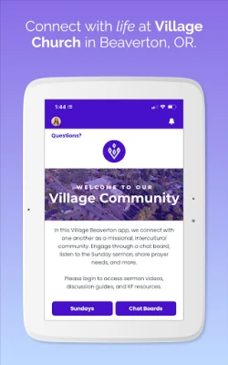 Through our app, Village Church attendees -- called Villagers -- gain easy access to sermon videos, DNA Group (small group) discussion guides, sermon archives, advent devotionals, bible reading plans, church announcements, forms, and fellowship resources.