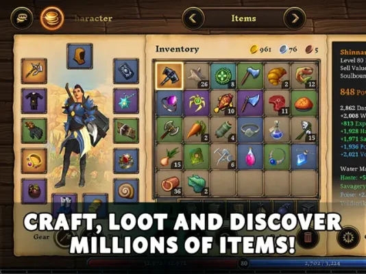 • Dive into the deep loot system with millions of item combinations to build your character according to your playstyle. • Craft your own weapons and outfits and enchant them with magical spells and heroic feats.