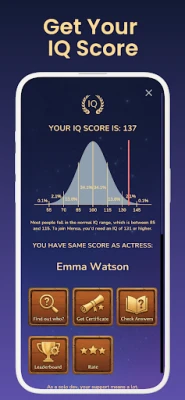 Once you've completed the IQ test, you'll receive an IQ score that tells you how well you did. This score can help you understand how smart you are compared to others who have taken the test. People who score high on the test are thought to be really smart.