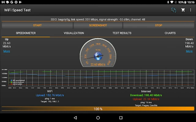 ✓ Save the past results of Wifi speed test automatically, including download and upload speed, ping, signal strength, network name, IP address