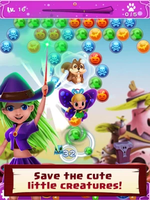 This addictive Puzzle Bubble POP Game invites you to the Magic World of Witchland, an exciting Magic Bubble Shooting Adventure!
