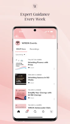 In the WREIN app, members can access networking opportunities, exclusive events, and life changing content to create financial freedom and build a legacy.
