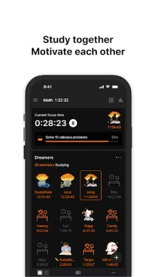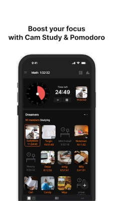 Record your study time and share it with friends. Get motivated with your friends and study together remotely.