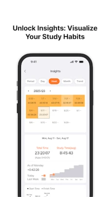 Color gets deeper as you study more. Visualize your day/week/month study records.